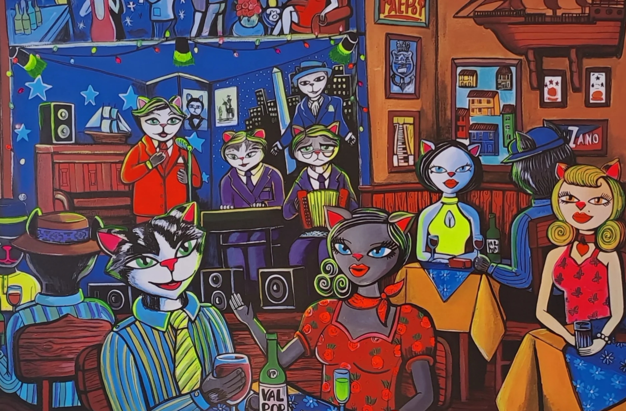 • Intervención: Aplicación de pintura acrílica fluorescente sobre la impresión (efecto con luz negra).